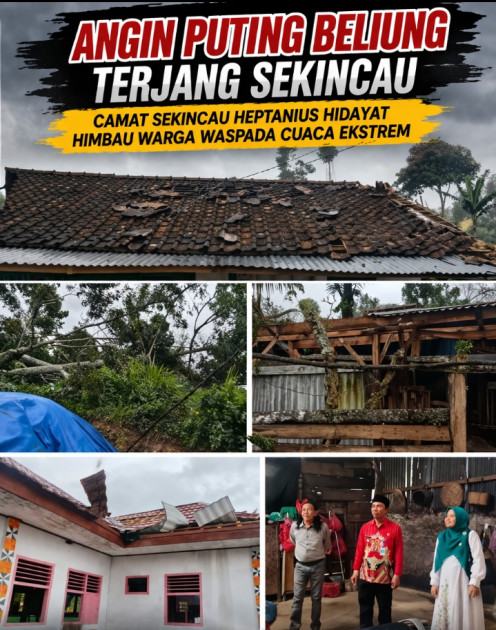 Berdasarkan data sementara, sebanyak 9 rumah warga serta 1 fasilitas pendidikan Taman Kanak-Kanak (TK) di Kelurahan Sekincau mengalami kerusakan pada bagian atap akibat terjangan angin kencang.
